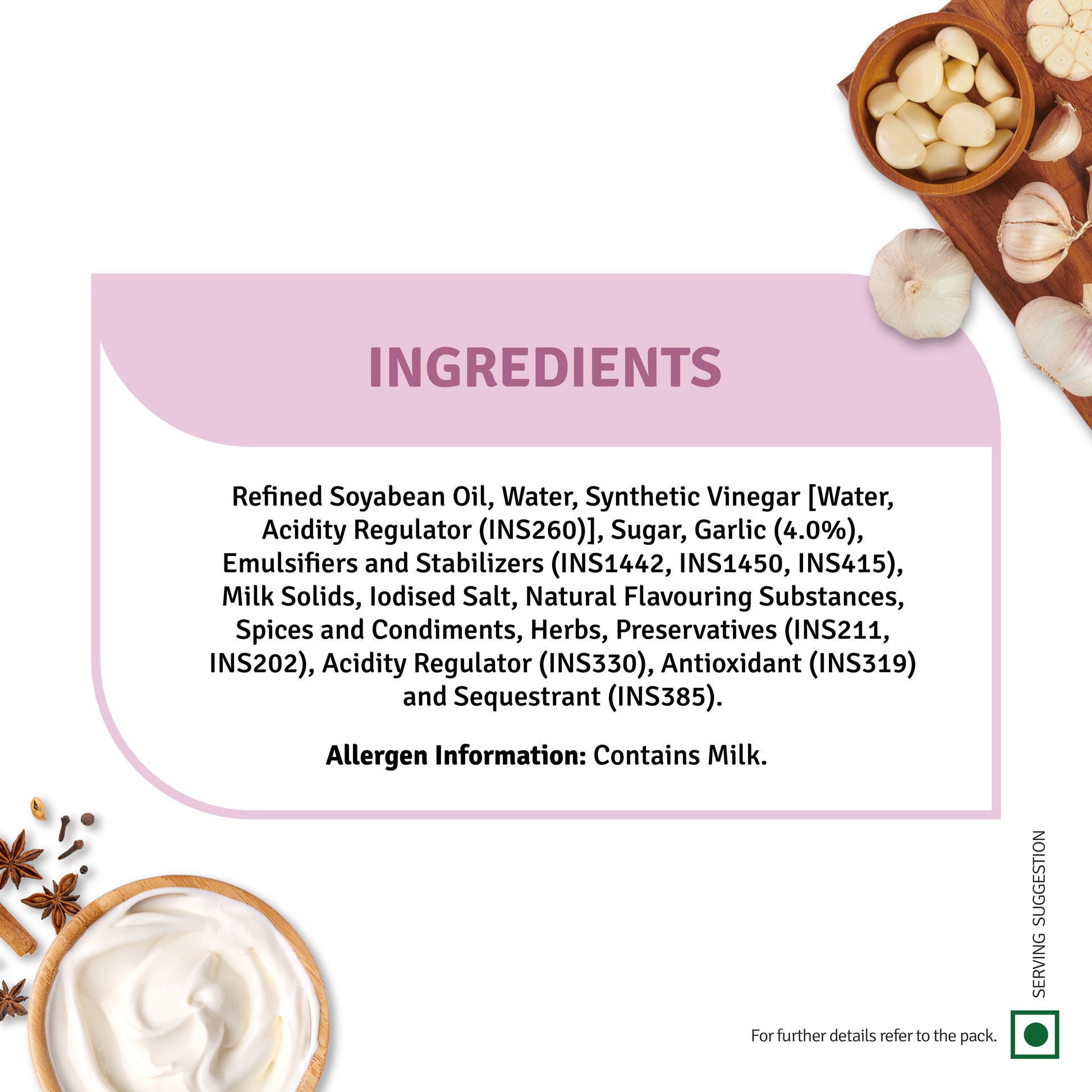 This creamy mayo is expertly crafted to perfectly complement the Indian palate, with rich garlic notes seamlessly blended evenly through the mayo!