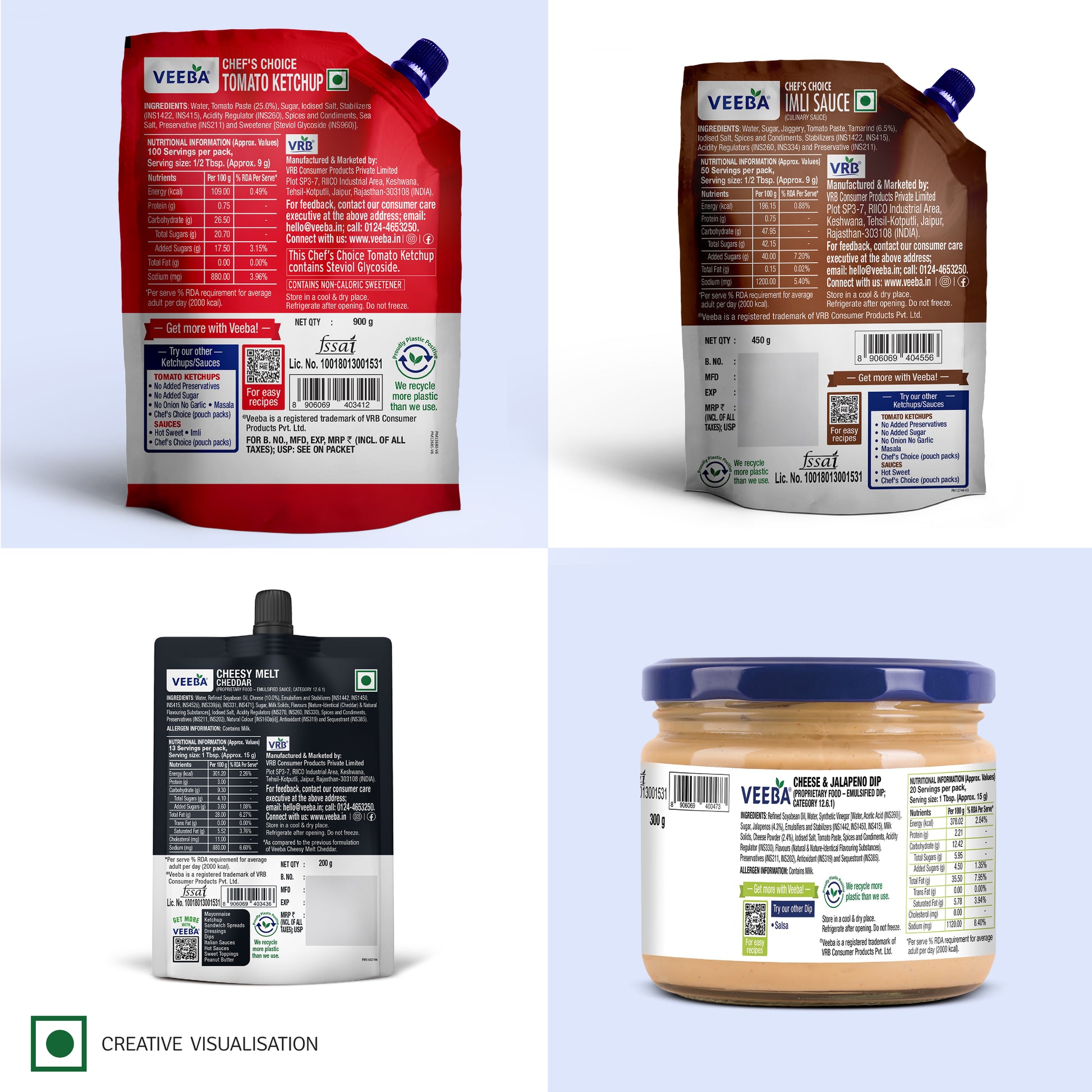 Imli Sauce (450g) | Tomato Ketchup Chef's Choice (900g) | Cheese Melt Cheddar (200g) | Cheese and Jalapeno Dip (300g)